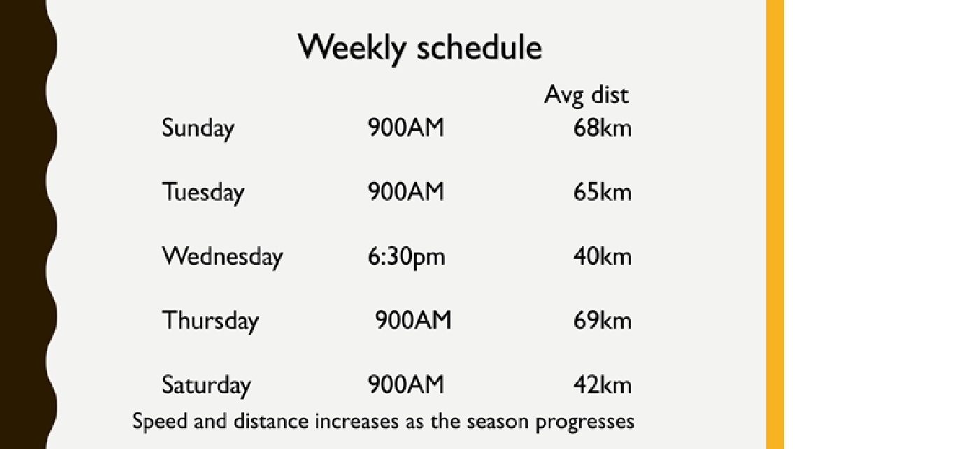 - Meeting/training of ride leaders: Saturday, April 18th, 9:00 to 11:30